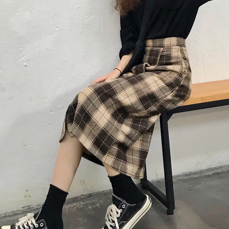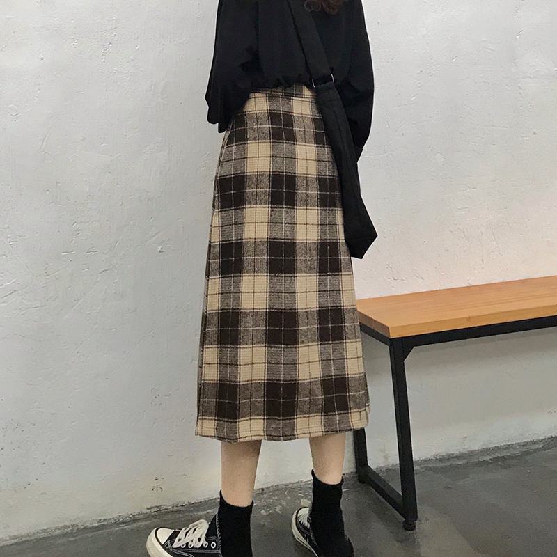 / 港味復古毛呢格子半身裙女秋裝2018新款顯瘦氣質高腰a字中長裙子