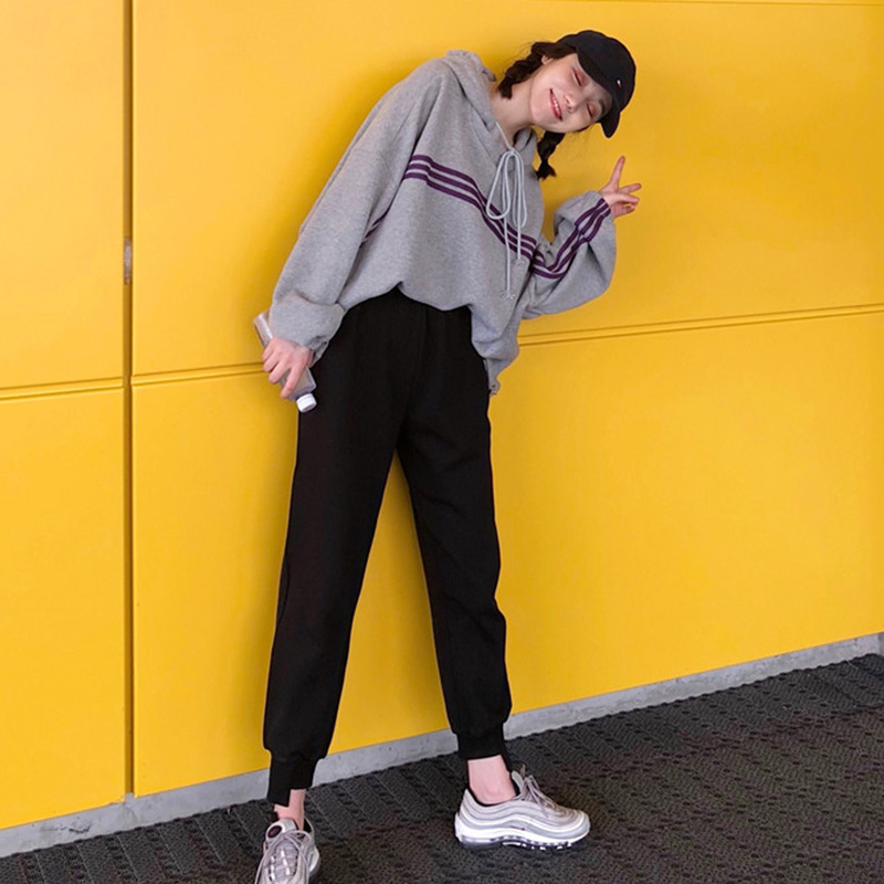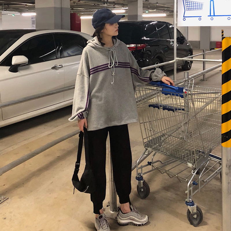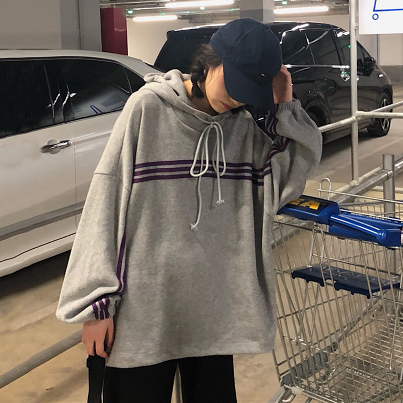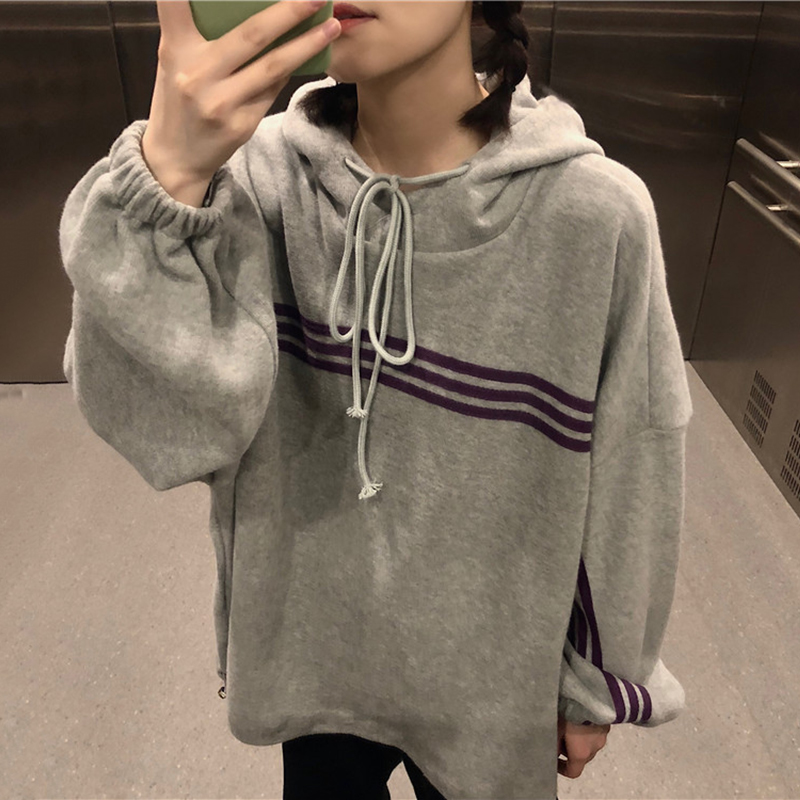 秋裝女2018新款韓版灰色絨面休閑慵懶風連帽寬松學生衛衣外套女潮