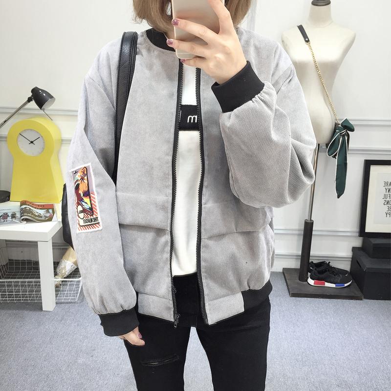 2017春秋新款寬松顯瘦燈芯絨外套女韓版長袖純色短款夾克上衣學生