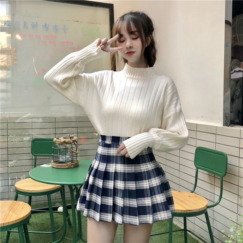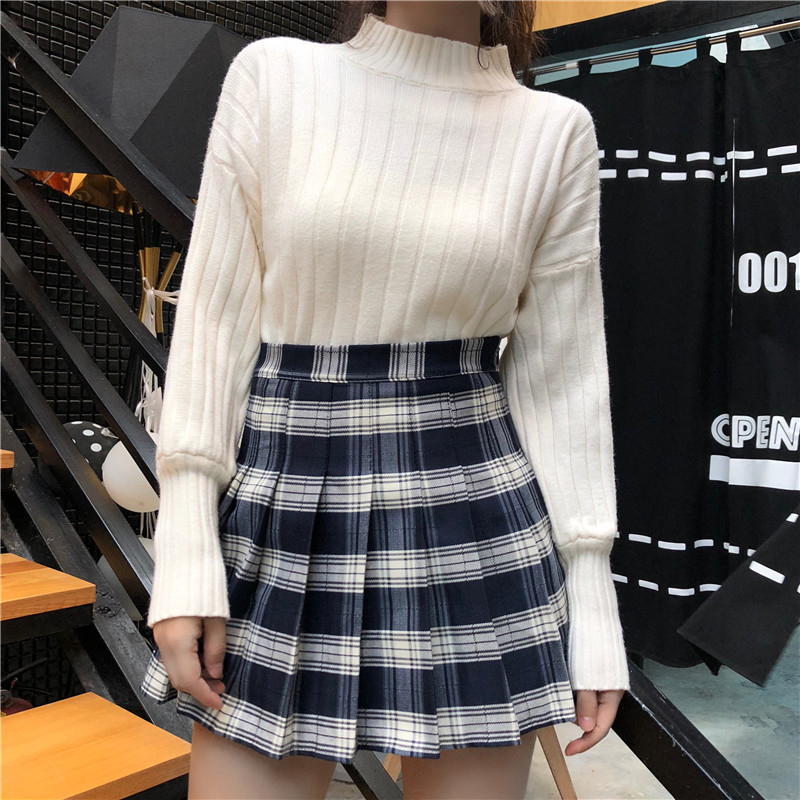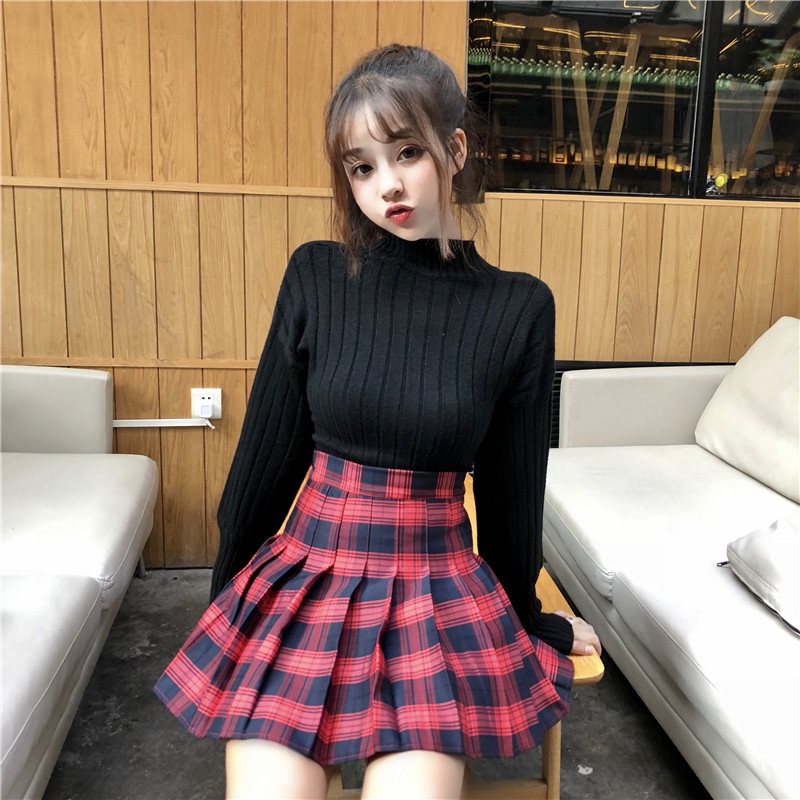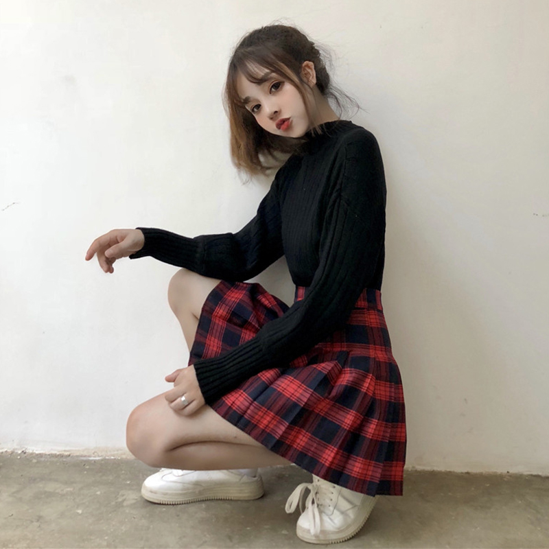 白色毛衣|黑色毛衣|紅格裙|黑格裙