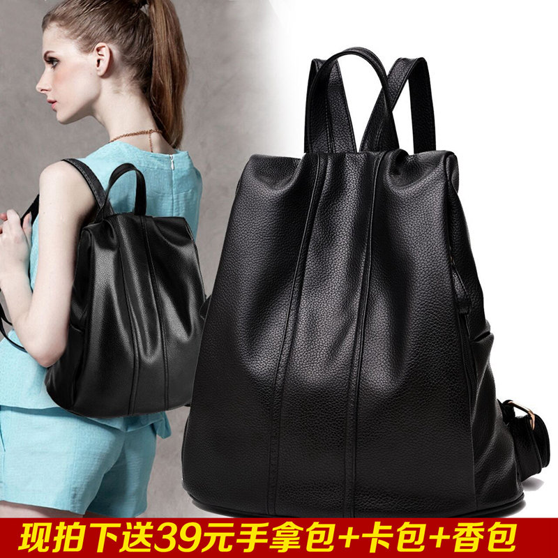 / 正品百搭皮質雙肩包女士日韓版街頭潮流中學生校園書包簡約后背包