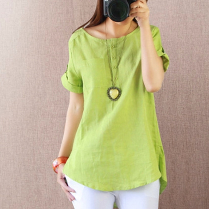 圓領,胸前鈕扣半開襟,整體為套頭款
