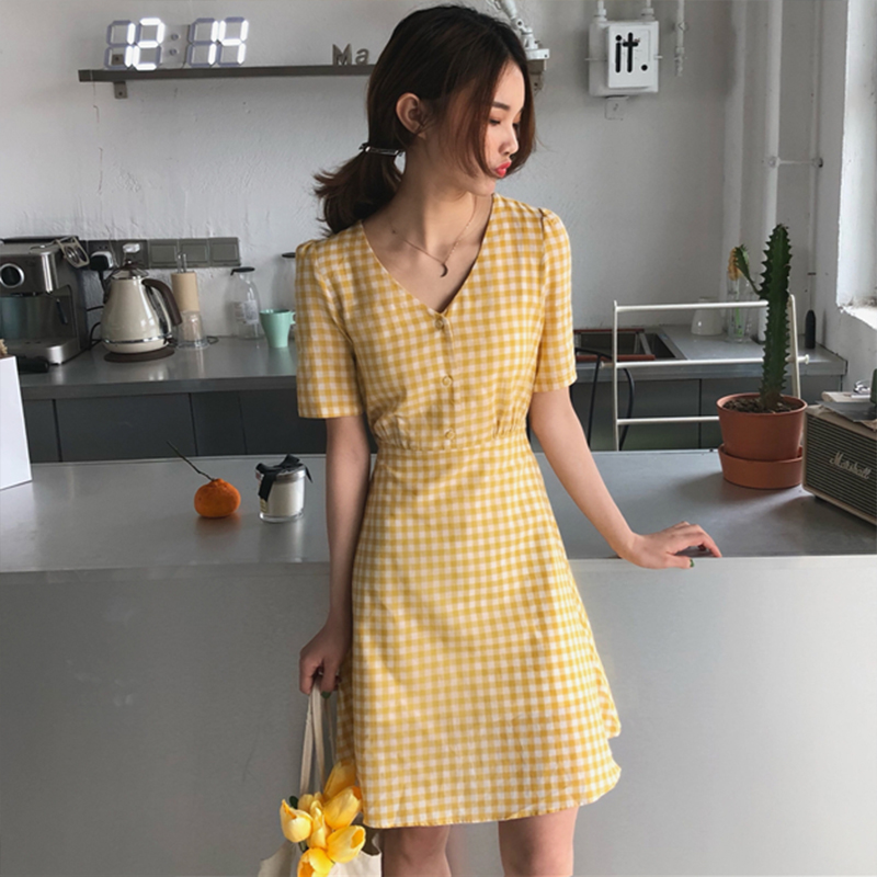 基礎的V領,腰部兩側有長長的帶子,隨意系上蝴蝶結即可收腰型