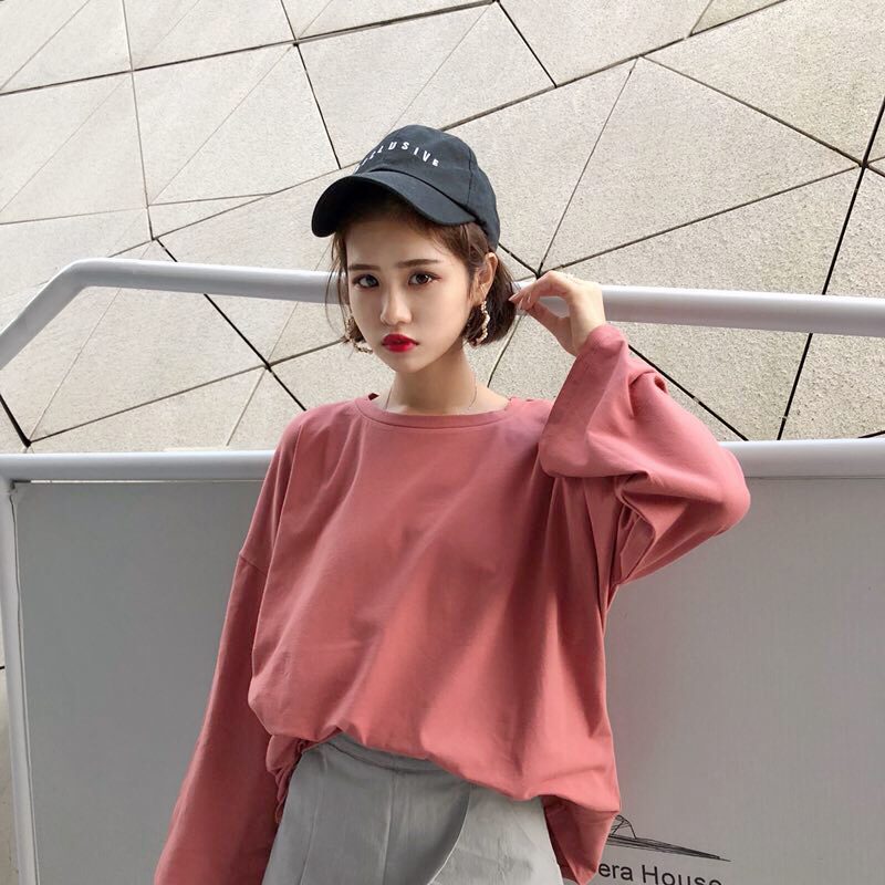 秋季女裝韓版基礎款簡約純色寬松百搭打底衫長袖休閑顯瘦T恤上衣