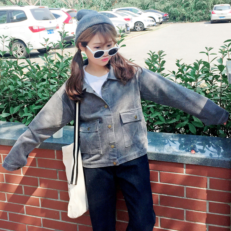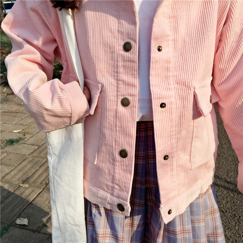 / 學院風寬松燈芯絨外套2018新款甜美少女粉色上衣學生休閑長袖秋裝