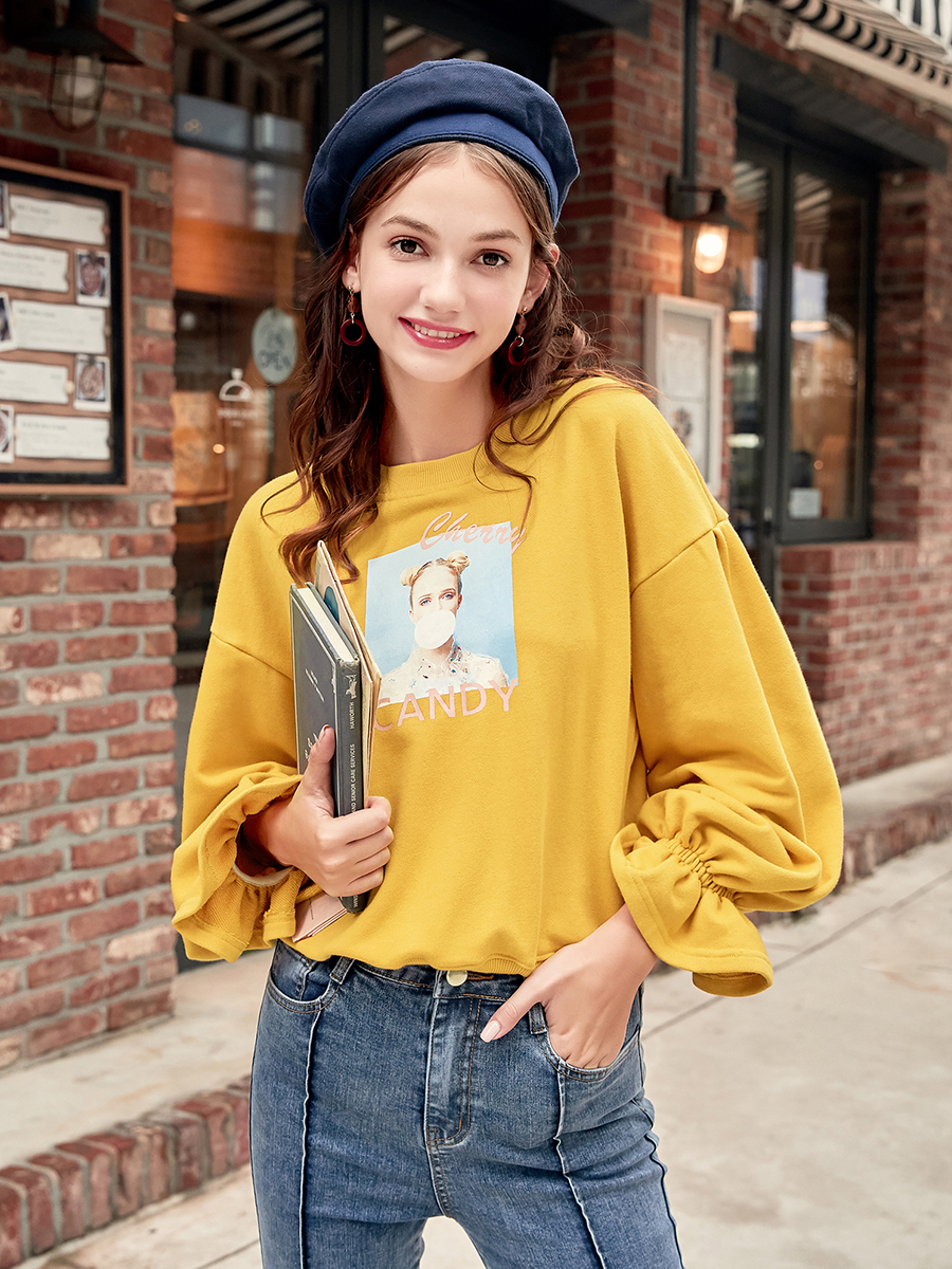 MG小象套頭黃色衛衣女學生長袖秋冬2018新款韓版寬松外穿chic上衣