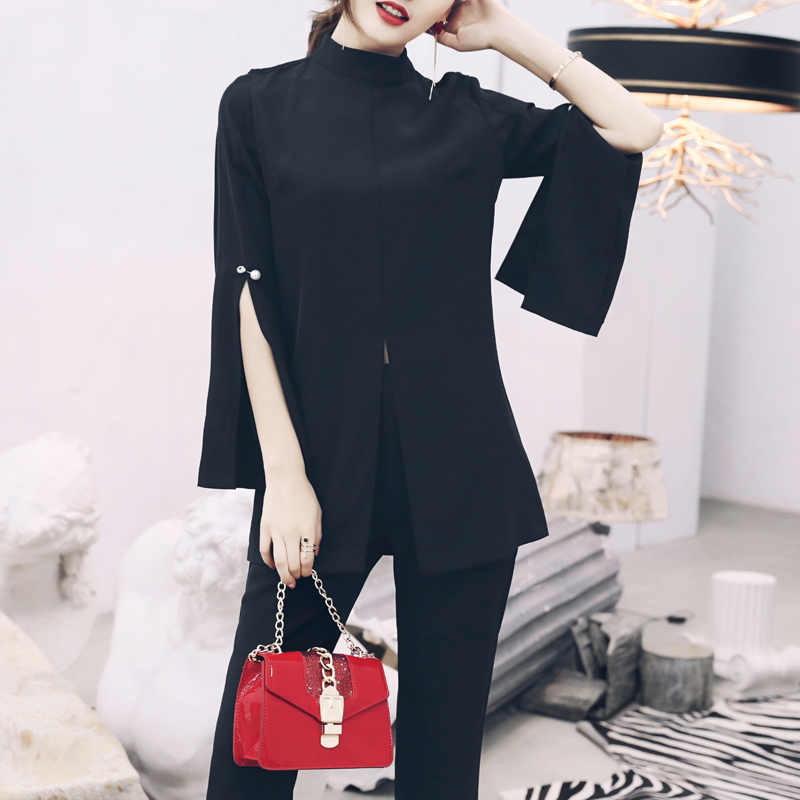 S秀2018夏季新款名媛女士氣質顯瘦時尚女神范微喇褲套裝兩件套潮