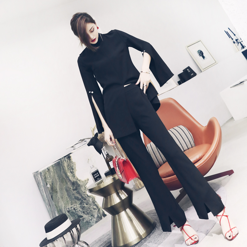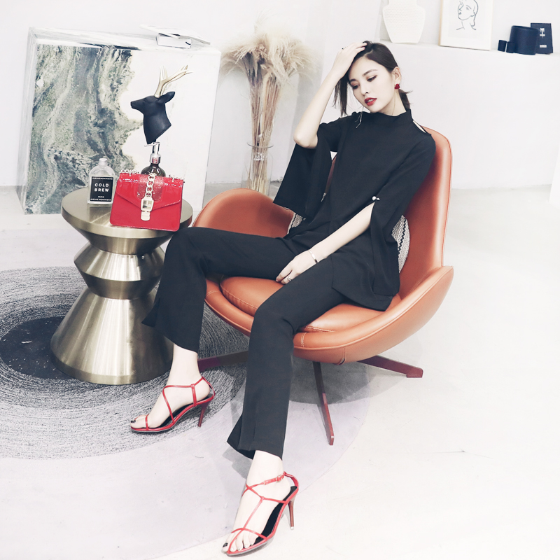 / S秀2018夏季新款名媛女士氣質顯瘦時尚女神范微喇褲套裝兩件套潮
