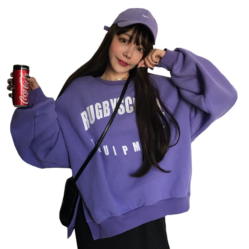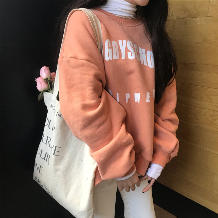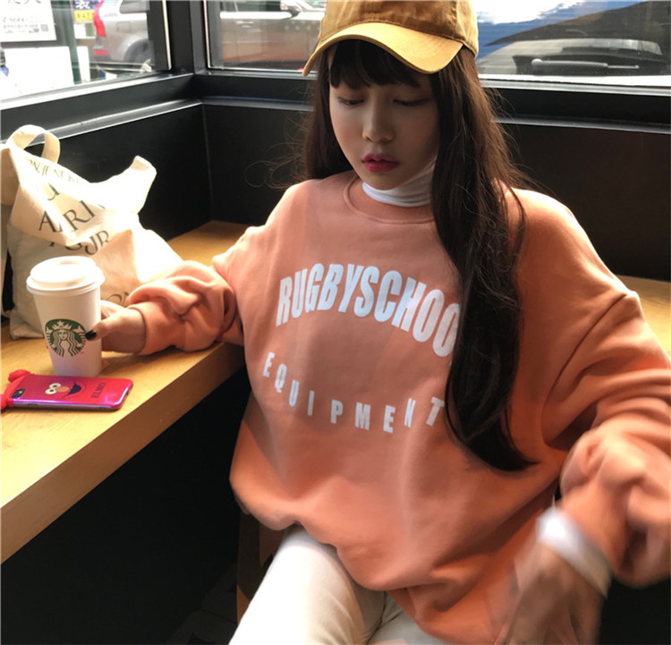 2018新款秋冬韓版原宿風寬松字母加絨加厚套頭超火衛衣上衣外套女