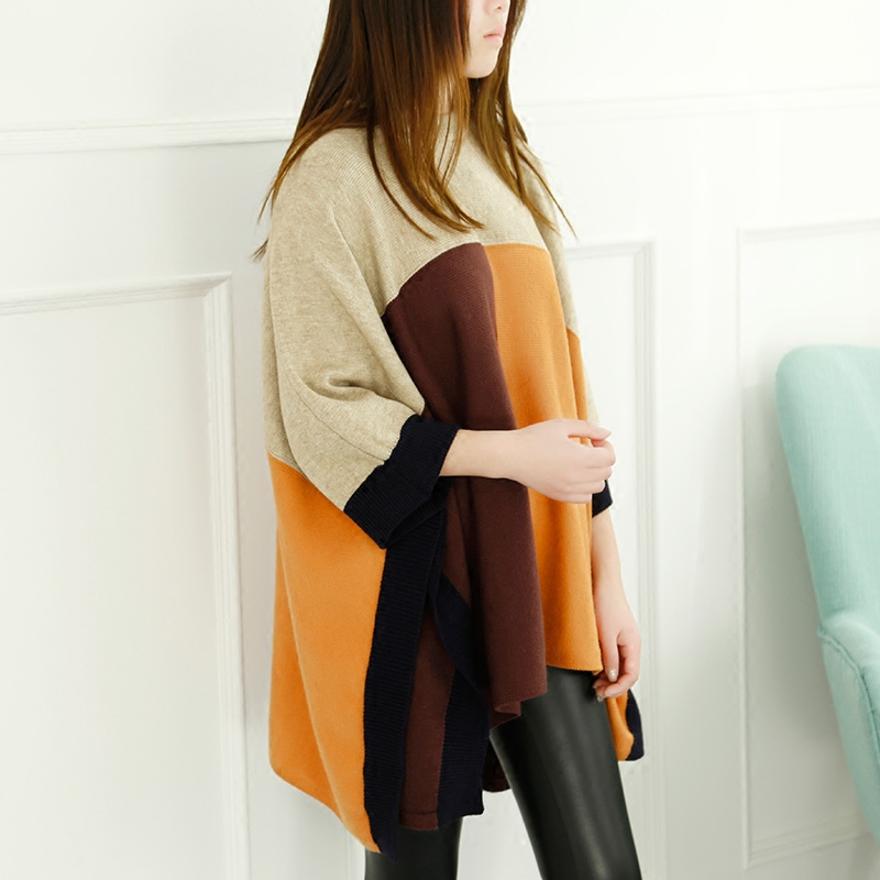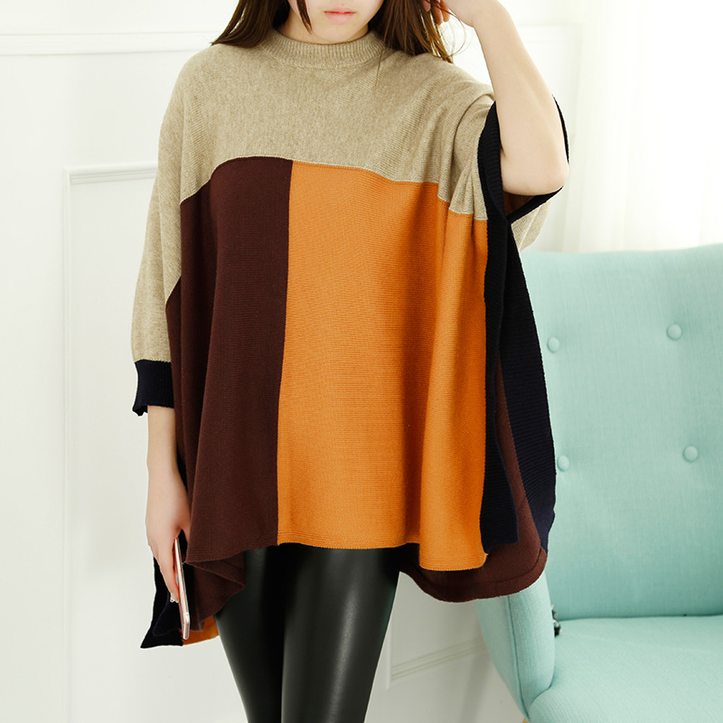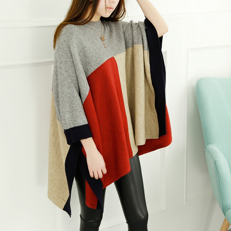 / 春裝新款女毛衣披肩前短后長韓版寬松圓領針織衫上衣女裝外套