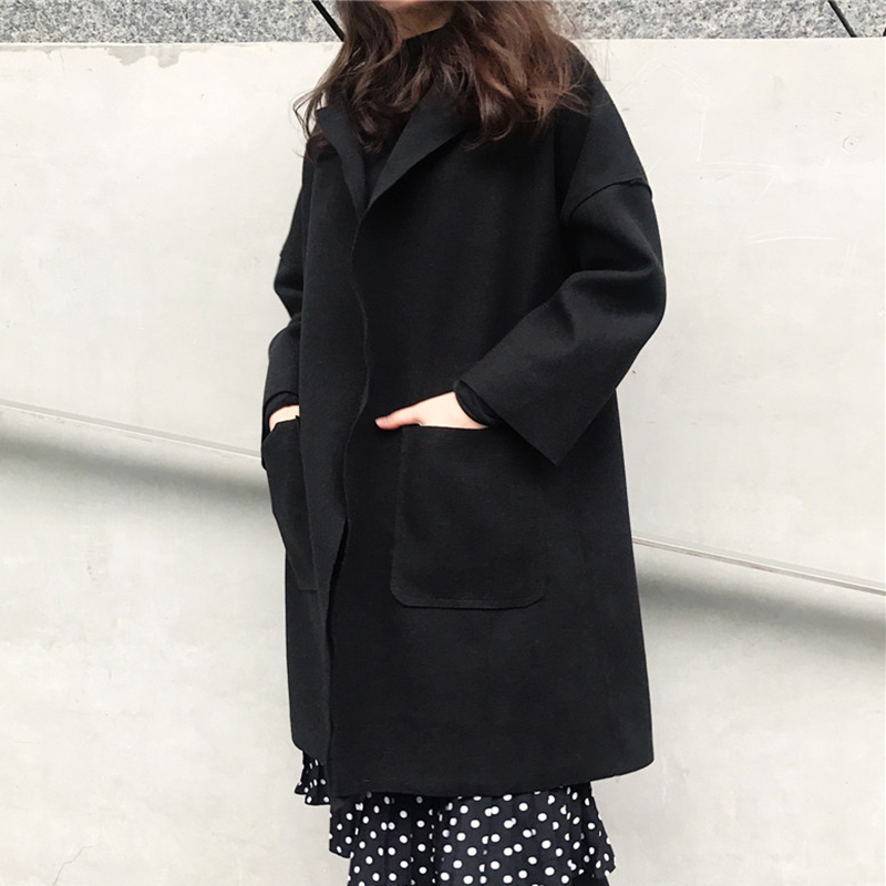 2018流行毛呢外套女秋冬裝新款赫本大衣黑色風衣學生寬松開衫上衣