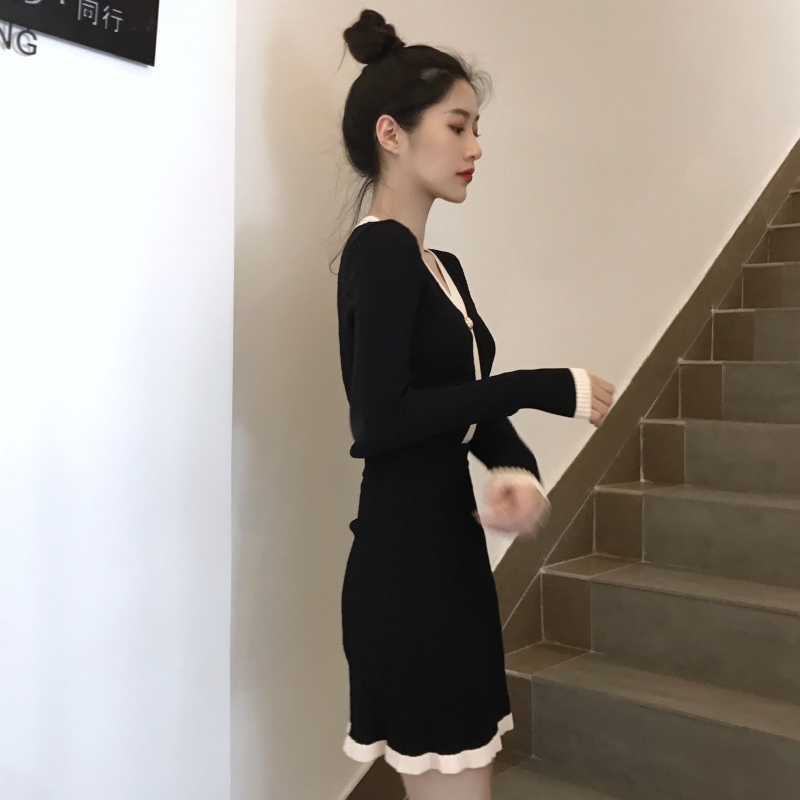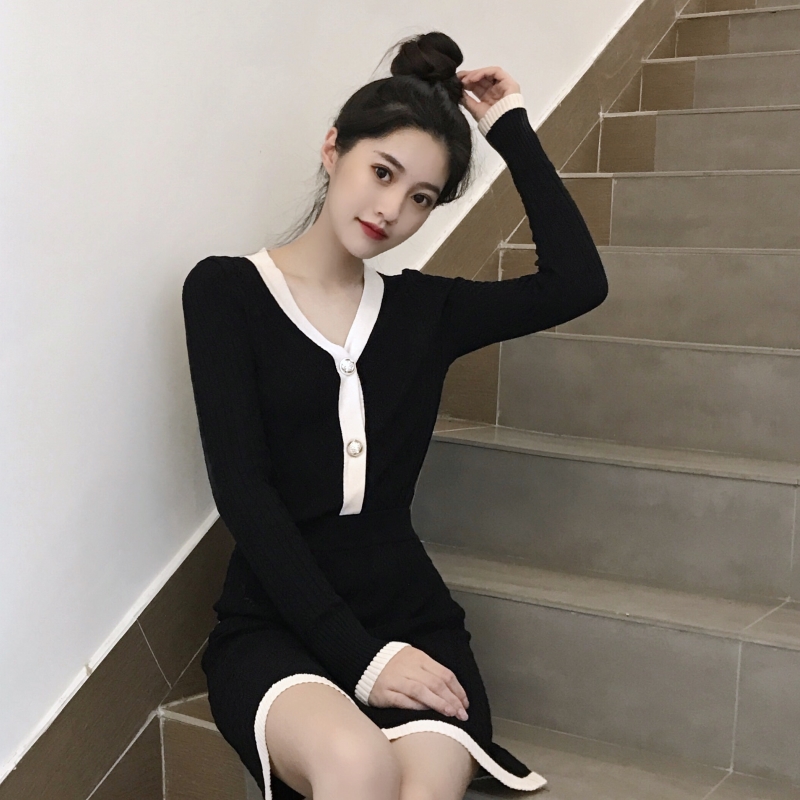 / 小香風新款秋季時尚兩件套V領排扣勾花開衫短裙針織氣質復古套裝