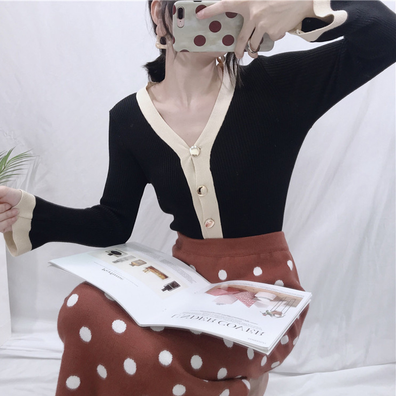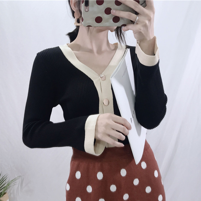 / 毛衣女秋冬裝2018新款港味時尚拼色短款上衣外套寬松休閑針織開衫