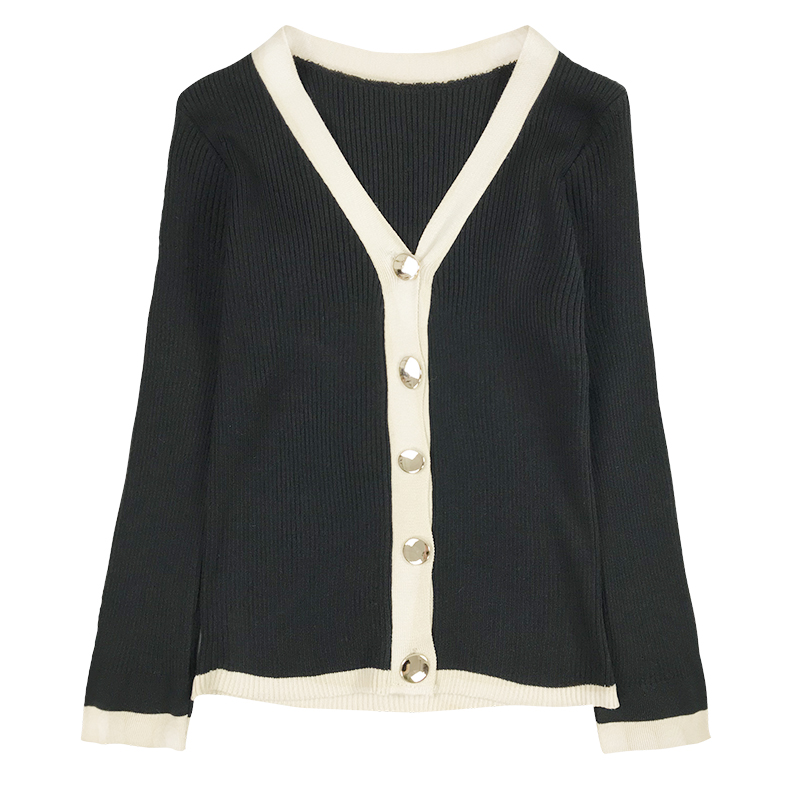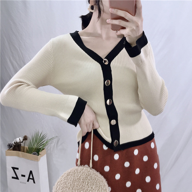 毛衣女秋冬裝2018新款港味時尚拼色短款上衣外套寬松休閑針織開衫