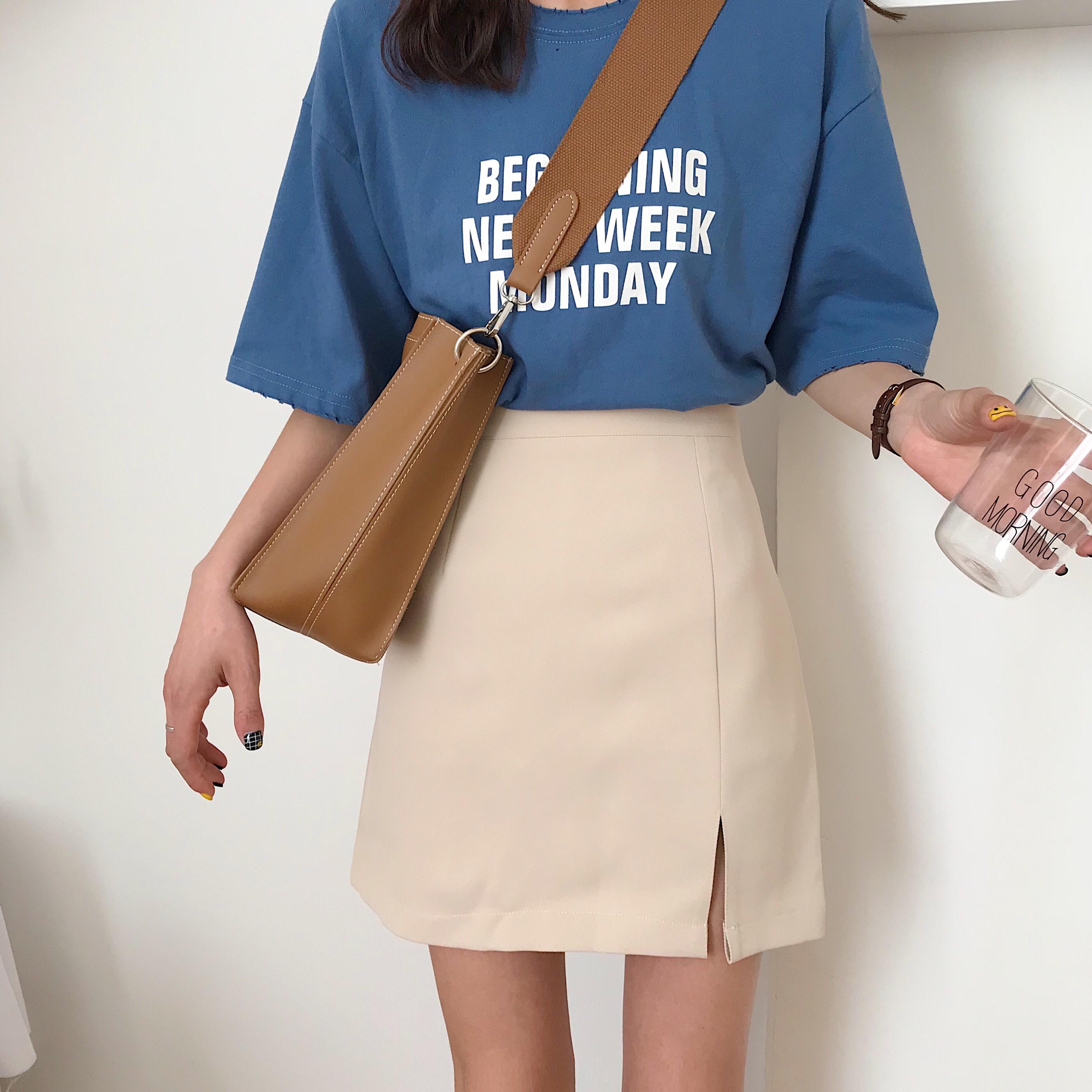 穿起來顯腿比例超好 顯腿長 下擺處有一個小開叉