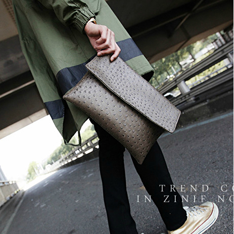 / 新款時尚手拿包鴕鳥紋手抓包手包文件包單肩包男斜跨包潮包