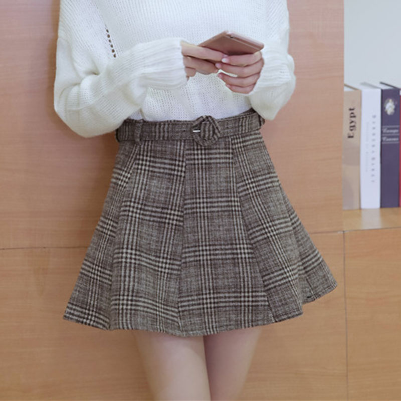 秋季新款2018女裝學院風毛呢格子半身裙學生氣質顯瘦高腰a字短裙