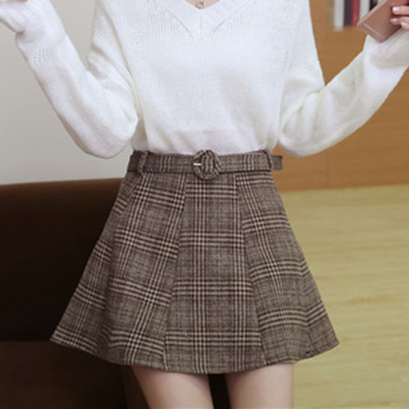 / 秋季新款2018女裝學院風毛呢格子半身裙學生氣質顯瘦高腰a字短裙