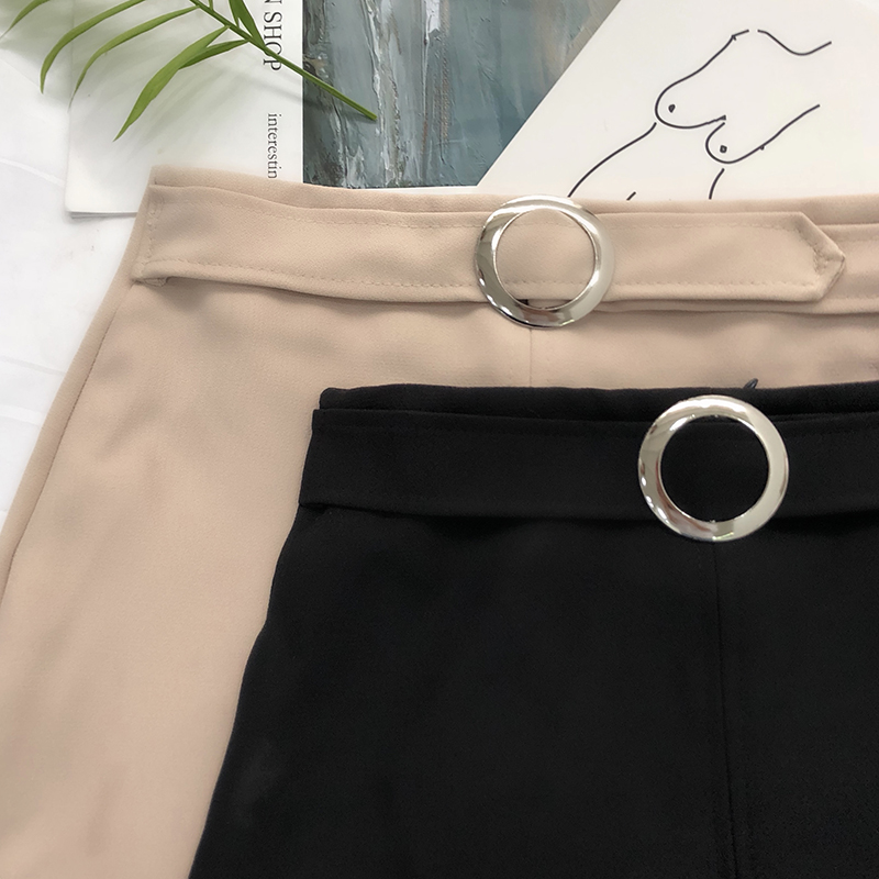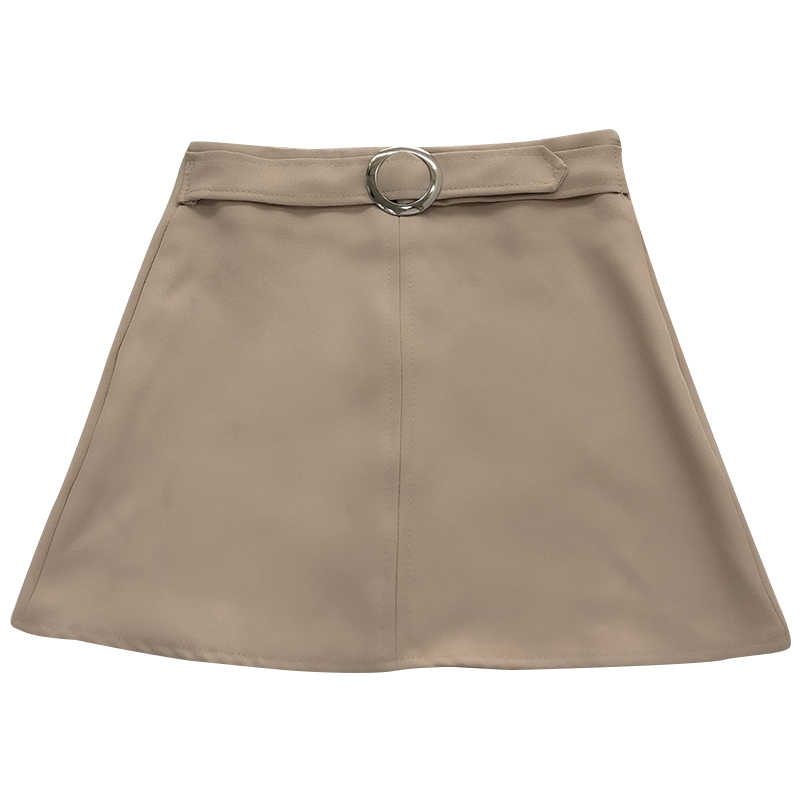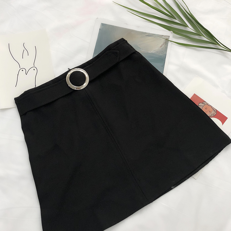 / 夏季新款女裝金屬扣氣質純色高腰顯瘦學生百搭A字半身裙包臀短裙