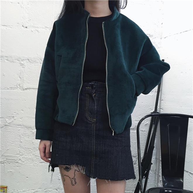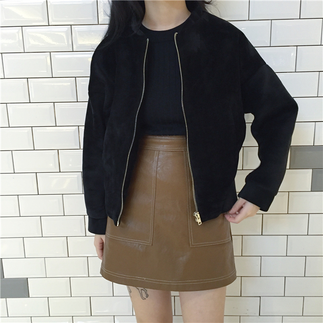 / 2018韓國新款復古百搭氣質時尚chic絲絨光澤棒球服長袖拉鏈外套女