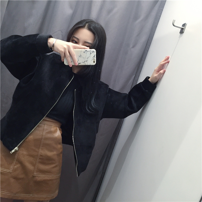 2018韓國新款復古百搭氣質時尚chic絲絨光澤棒球服長袖拉鏈外套女