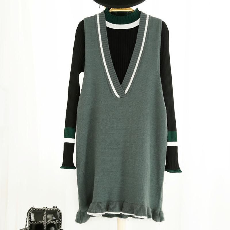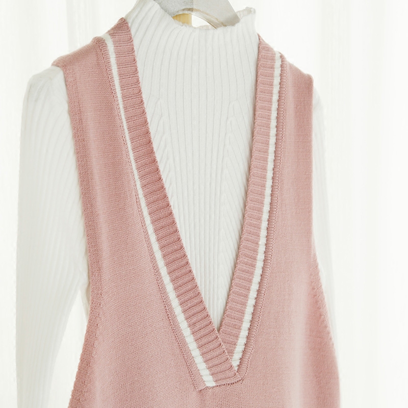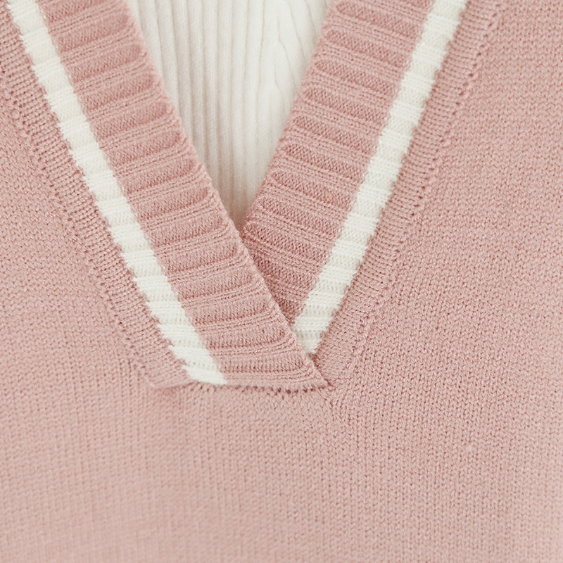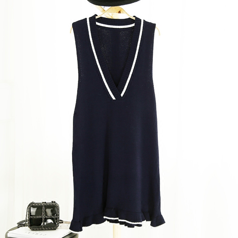 / 春季新款純色女毛衣寬松背心針織衫V領中長款馬甲打底衫百搭