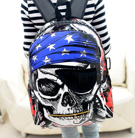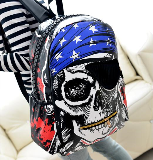 2017韓版新款時尚學生背包韓版潮男雙肩書包個性街頭海盜骷髏頭包