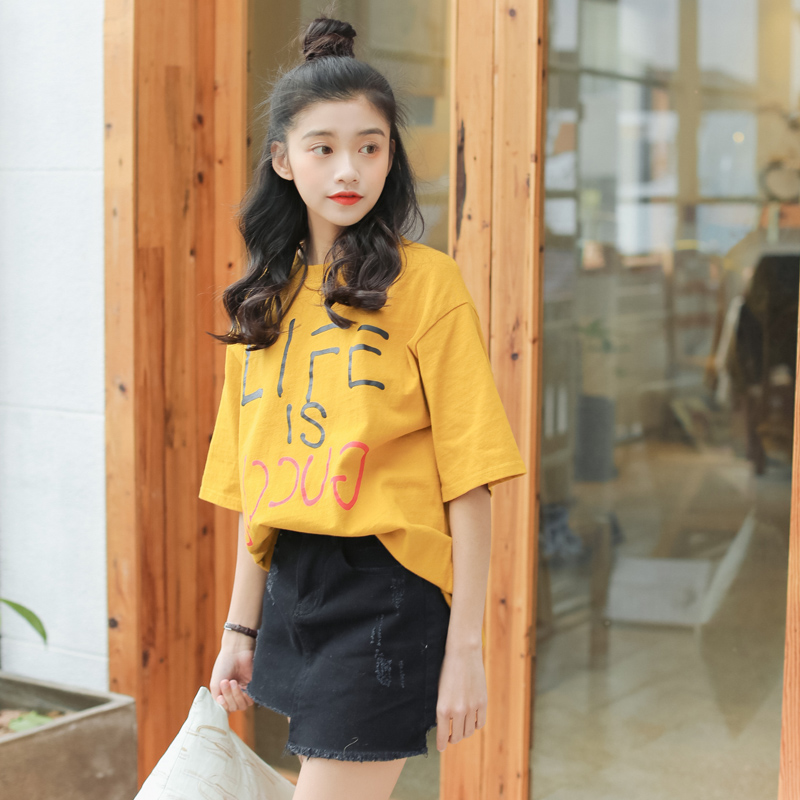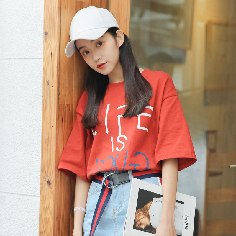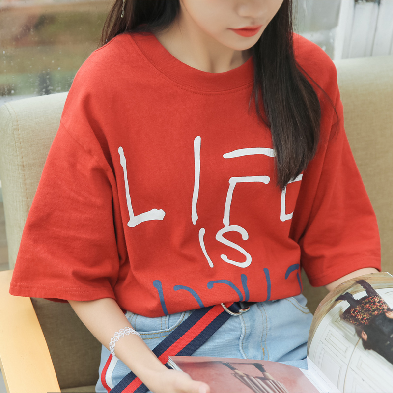 短袖t恤女寬松韓版學生百搭春夏新款字母印花圓領上衣小衫潮