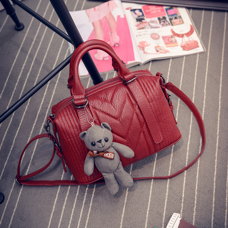 新款韓版單肩女包迷你波士頓小包包菱格復古手提包休閑斜挎包