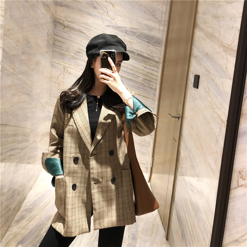 新款小香風秋季格紋西服學生寬松秋裝復古格子chic風小西裝外套女