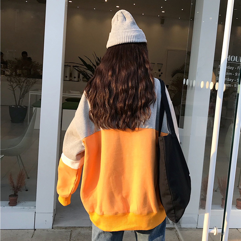 / 冬季新款女裝韓版拼色高領超火衛衣外套寬松加絨加厚學生長袖上衣
