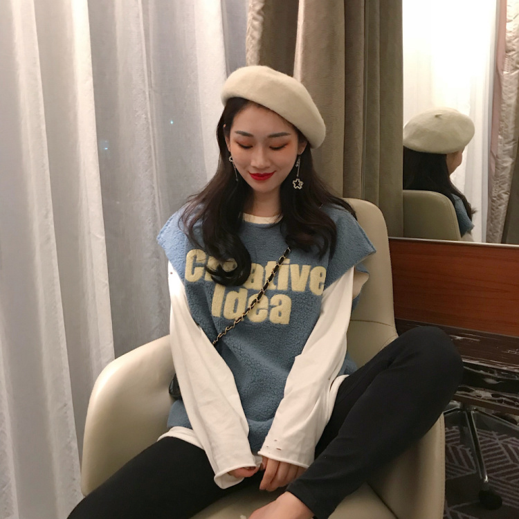 2018秋冬新款韓版時尚套裝寬松馬甲長袖破洞設計感T恤女兩件套潮