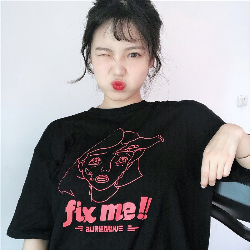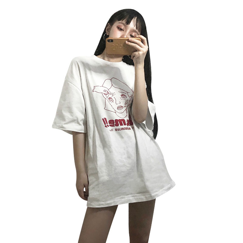 / 韓版中長款寬松卡通女孩怪味少女短袖T恤夏季學生上衣女裝bf風潮