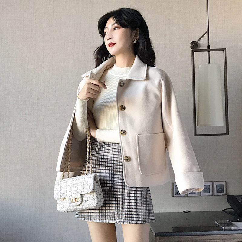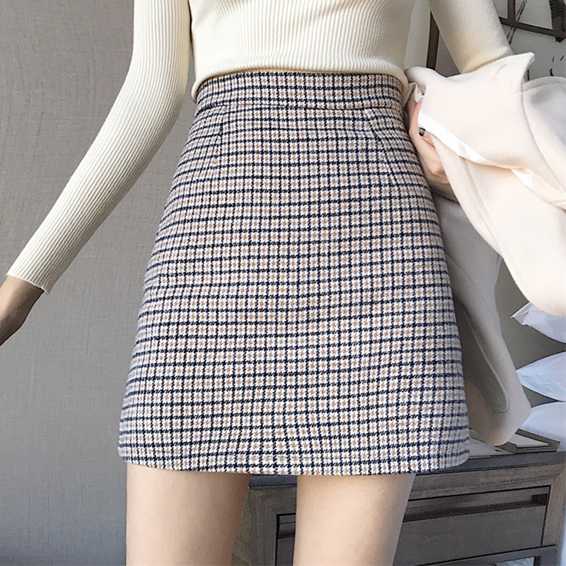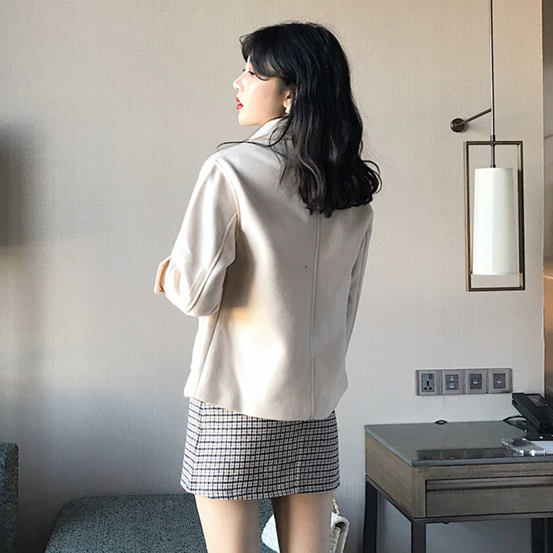 套裝女秋冬2018新款雙面呢子大衣毛呢外套高腰顯瘦格紋A字半身裙