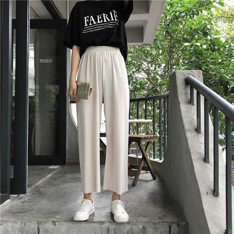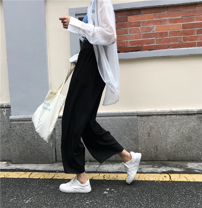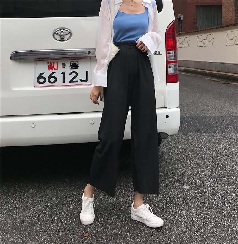 夏裝女裝韓版寬松松緊腰高腰闊腿褲薄款休閑褲九分褲直筒褲長褲潮