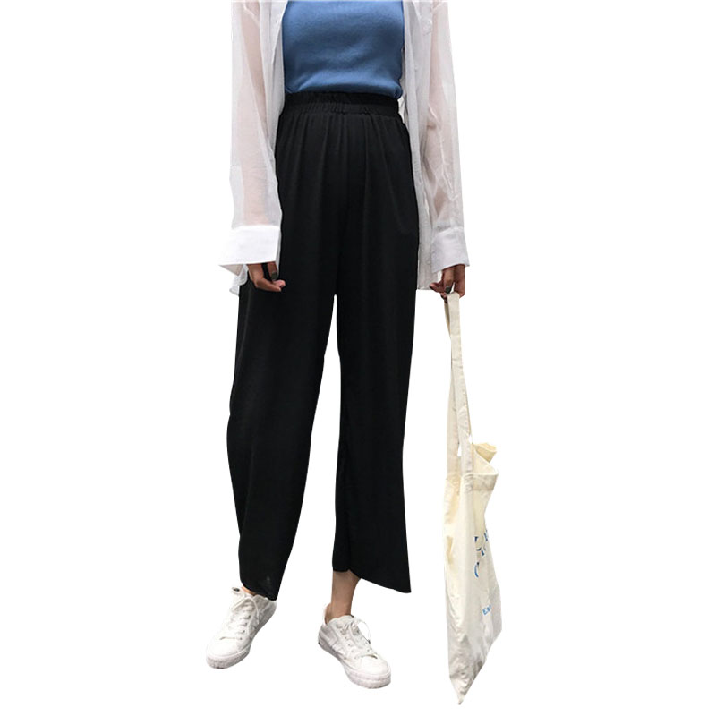 / 夏裝女裝韓版寬松松緊腰高腰闊腿褲薄款休閑褲九分褲直筒褲長褲潮
