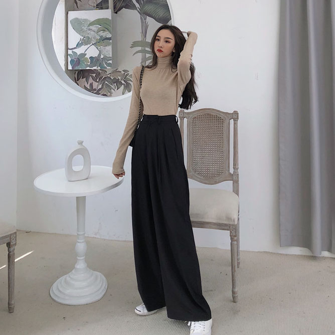秋裝2018新款女復古氣質顯瘦高腰大長腿西裝褲女拖地長褲休閑褲潮