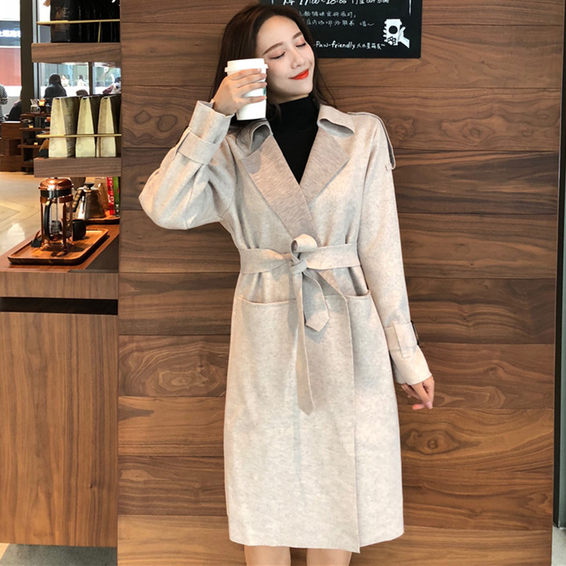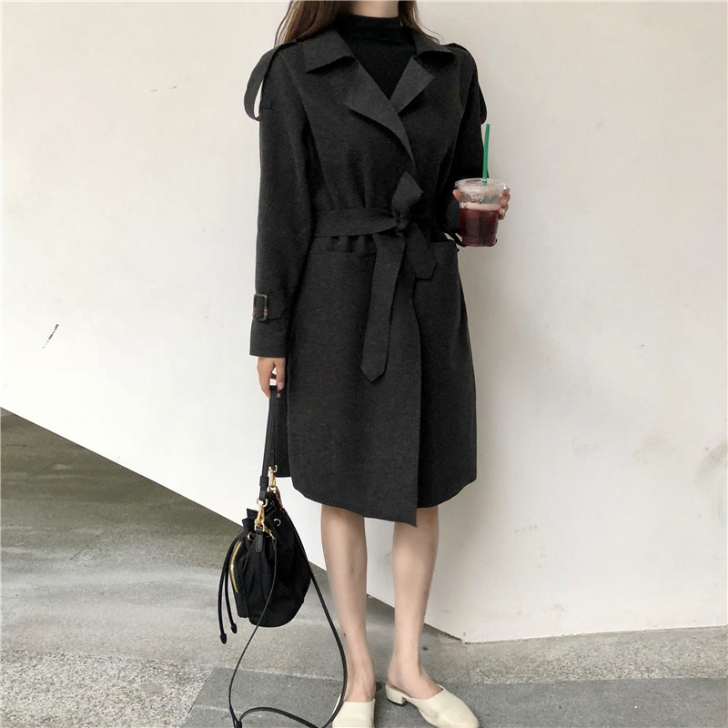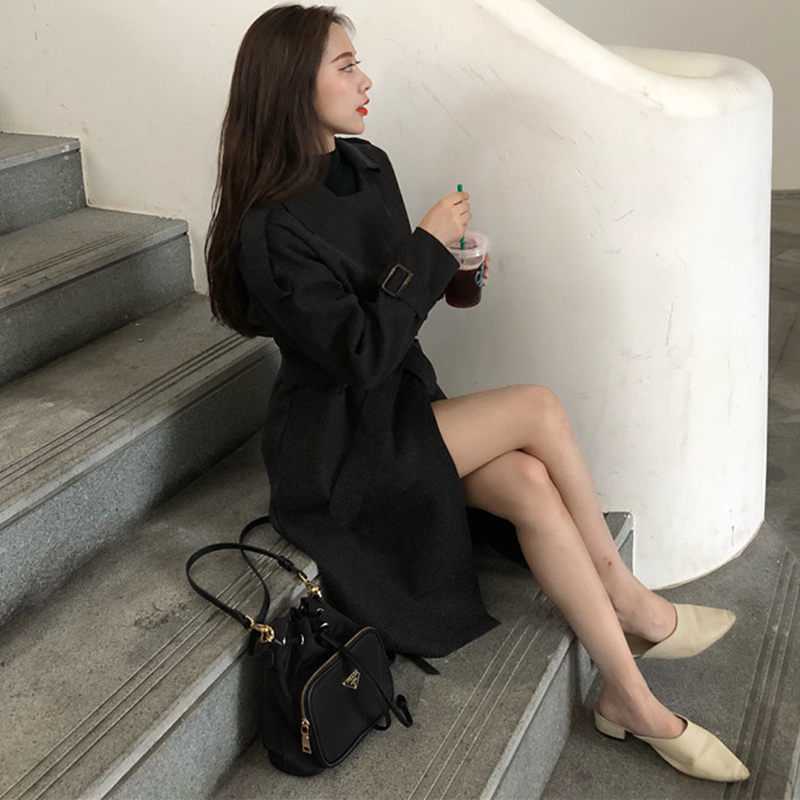 2018流行收腰顯瘦毛呢外套女秋冬裝新款赫本大衣學生黑色開衫上衣