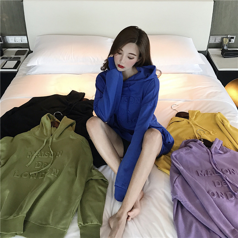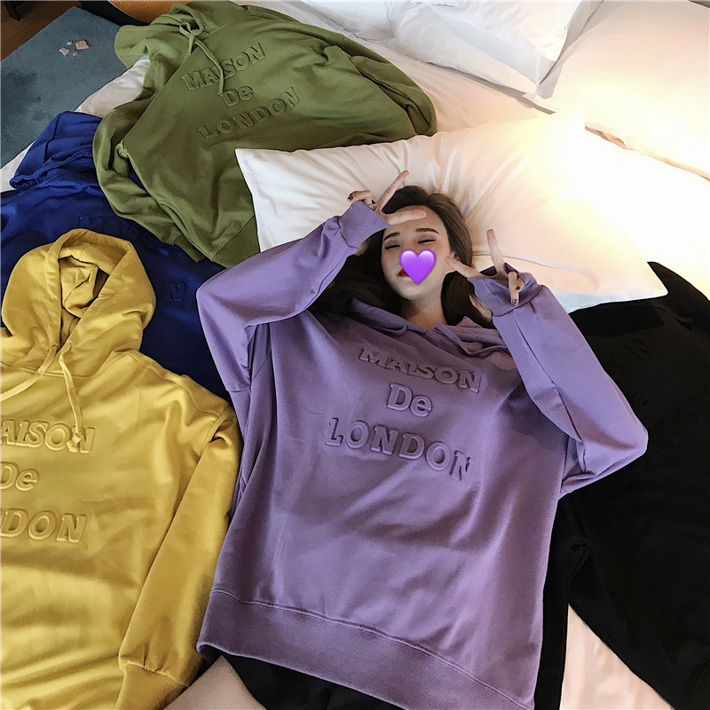 / 2018新款韓版港味復古百搭寬松bf簡約字母上衣長袖連帽薄款衛衣女