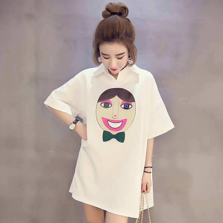 | 名稱 | 翻領卡通印花短袖寬松顯瘦連衣裙 |