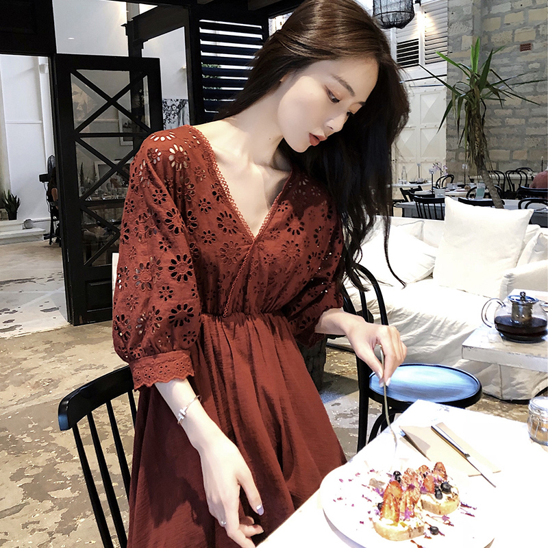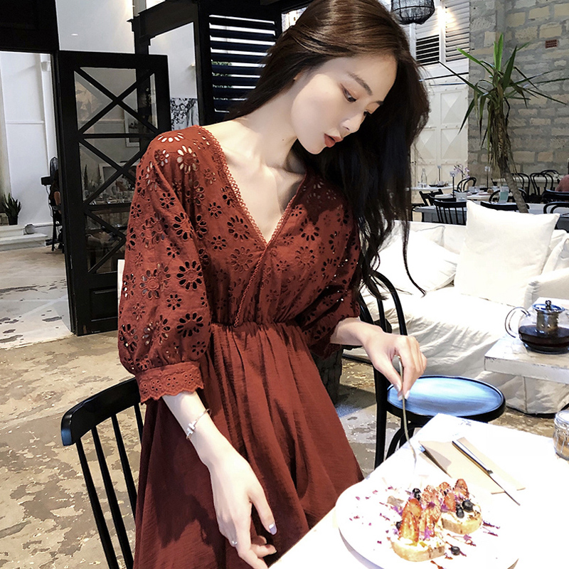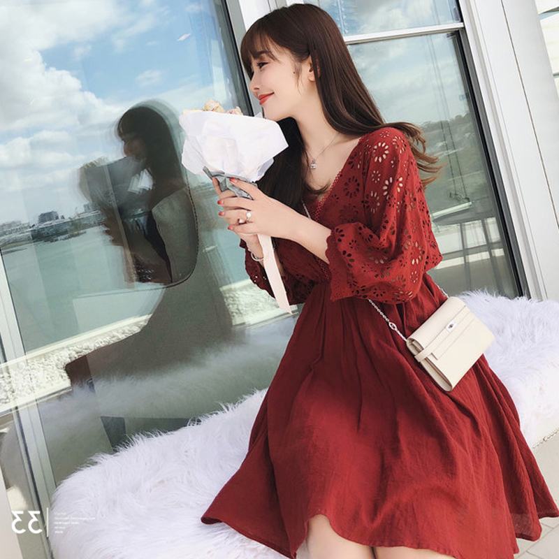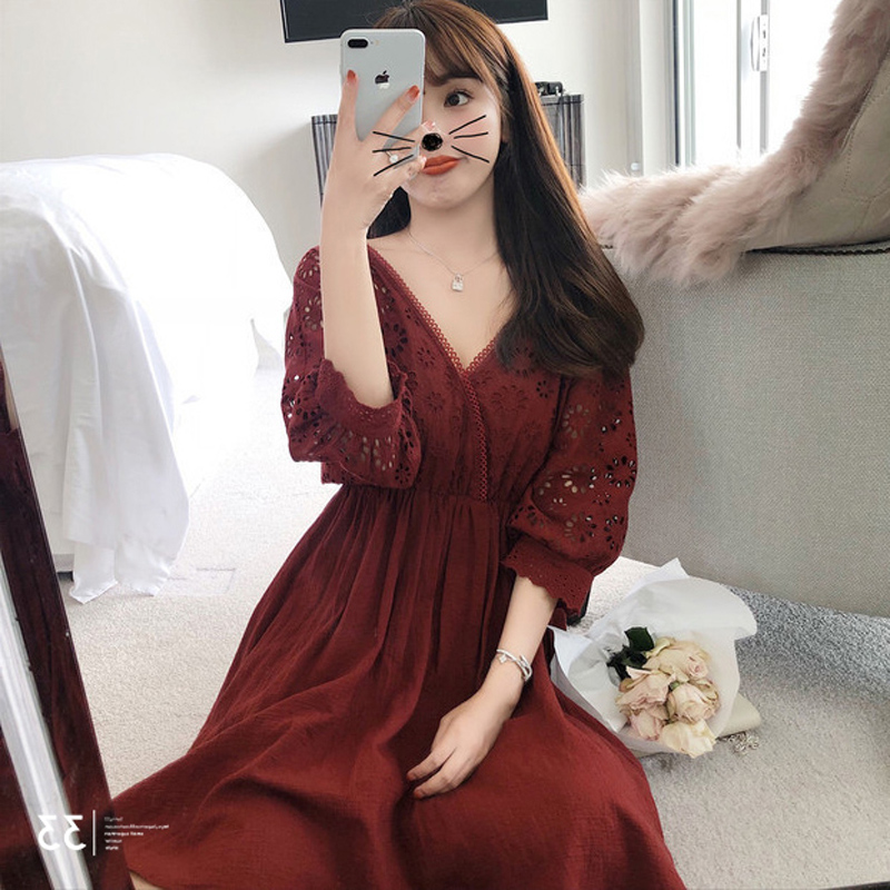2018新款夏裝顯瘦純色胖mm減齡遮肚子蕾絲連衣裙港味氣質晚晚風