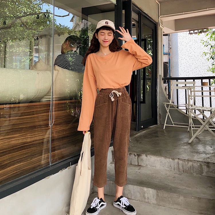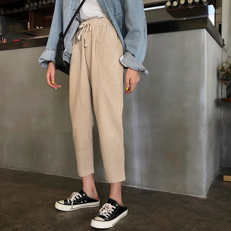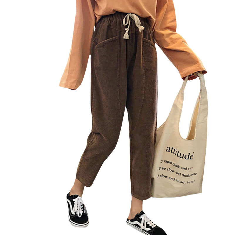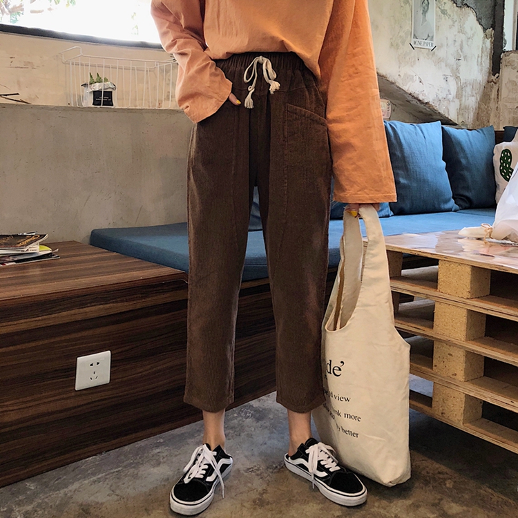 / 秋冬女裝韓版寬松燈芯絨休閑褲闊腿褲哈倫褲松緊腰直筒褲學生褲子