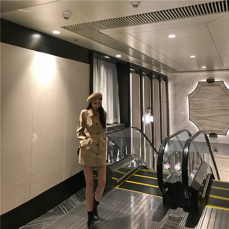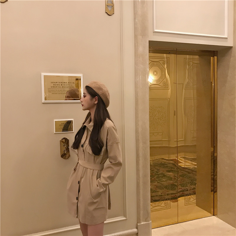 風衣女中長款韓版秋季2018新款純色系腰寬松復古外套(有里布)潮
