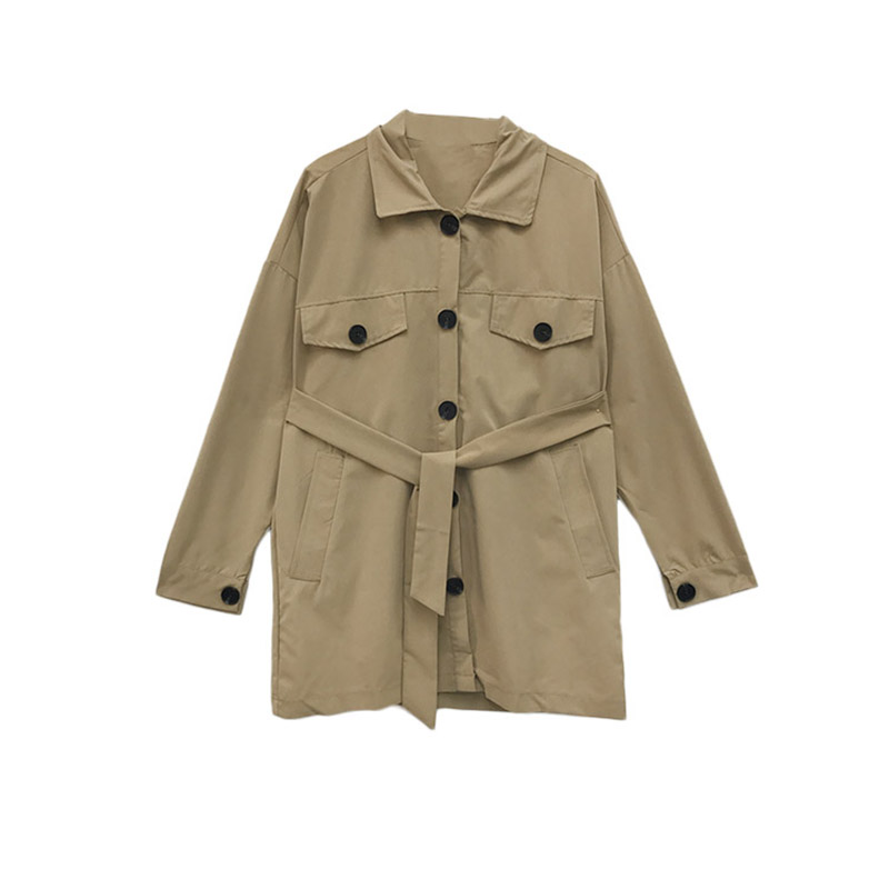 時尚風衣女中長款韓版秋季2018新款外套兩穿翻領純色綁帶顯瘦開衫