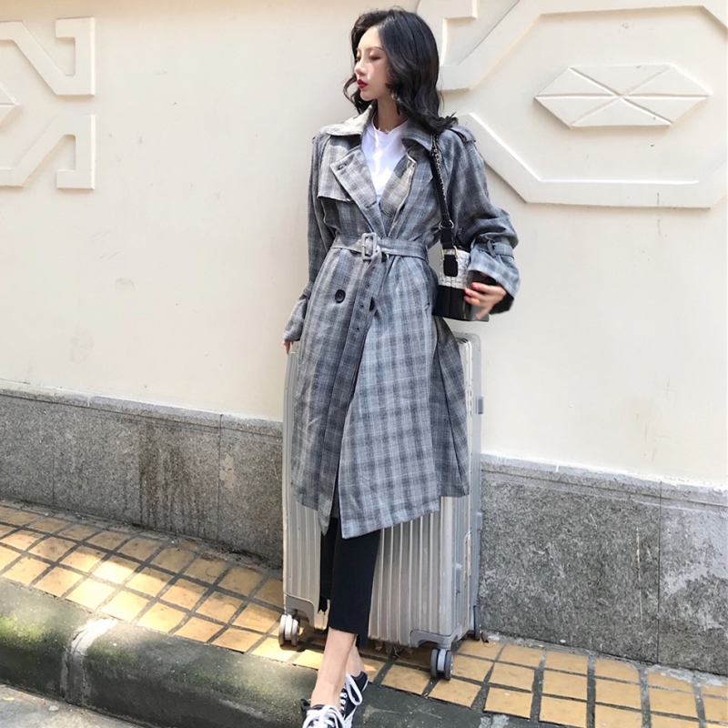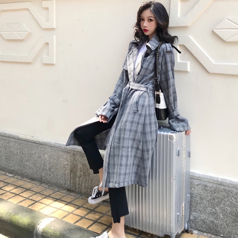 風衣女中長款韓版秋季2018新款純色系腰寬松復古外套(有里布)潮