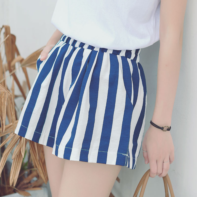 / 夏裝新款韓版女裝高腰顯瘦闊腿熱褲百搭豎條紋寬松休閑短褲潮