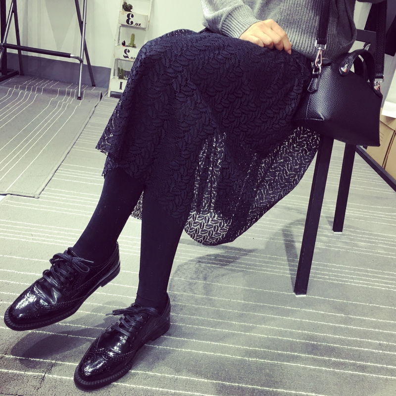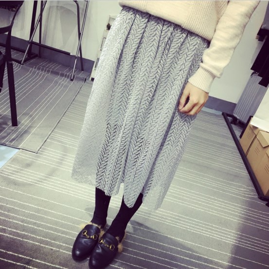 是春天快來的關系嗎 我最近好像又喜歡上這樣的蕾絲東西了 你們也跟著我漢子了太久 風格是不是也偶爾改變下 貌似目前非常流行這樣的蕾絲裙 穿件加長款毛衣 露出點裙邊 或者跟衛衣皮衣那些配 會更有感覺 這種蕾絲的花紋不會很花哨 看起來像是小葉子 面料很柔軟舒服 不是硬邦邦的那種 腰部松緊腰設計 有彈性而且很結實 所以 冬天可以試試這樣的裙子 讓冬季都變的仙仙噠