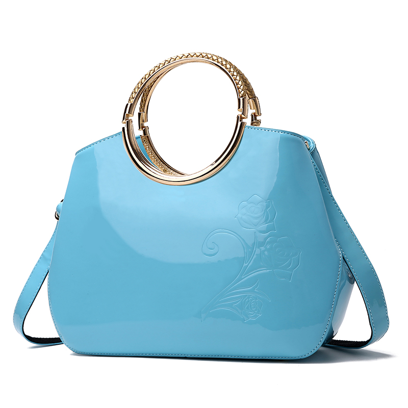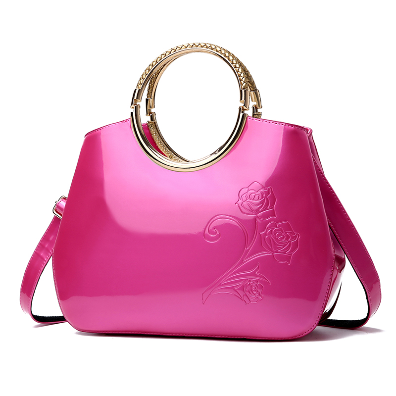 / 女士包包新款潮時尚玫瑰單肩包圓環漆皮手提包貝殼包斜跨包包