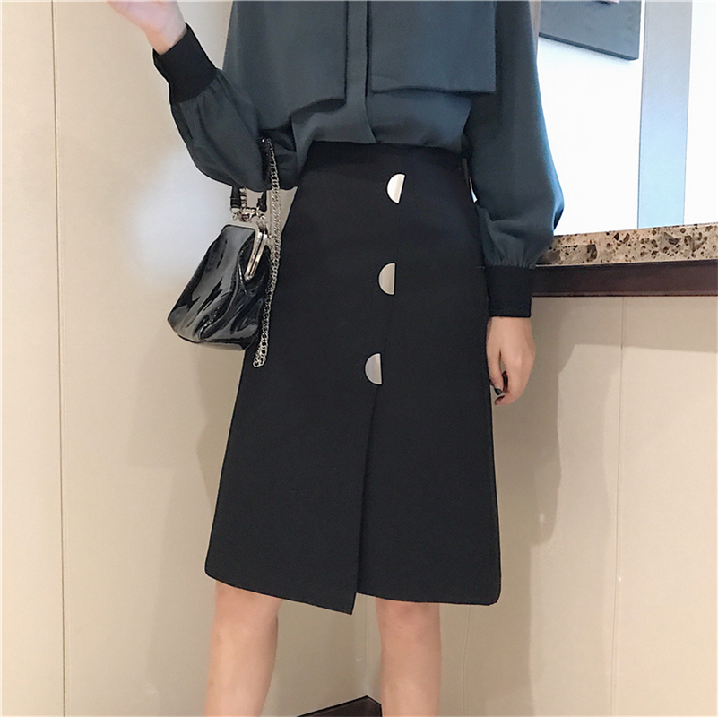 / 新款立領撞色披肩長袖襯衣時尚套裝半圓金屬扣百搭半身裙兩件套女
