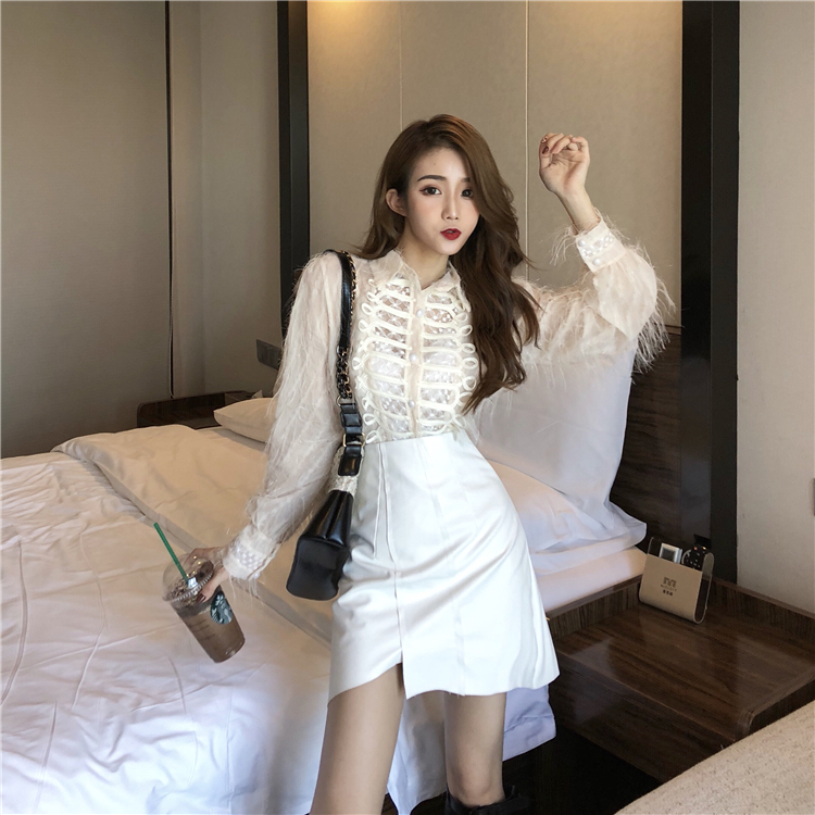 女神套裝新款襯衫蕾絲打底衫上衣+寬松顯瘦高腰絲絨半身裙女長裙